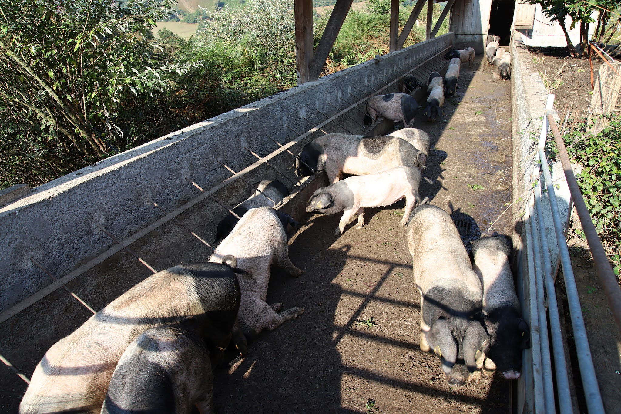 Cochons Basques en plein air avec leurs petits sympa à regarder. Quand au magasin charcuterie très bonne, mais très chère. La prochaine fois nous irons pour déjeuner. Le plateau avec un choix pour 10 € Nous essaierons avant de quitter ce beau pays.